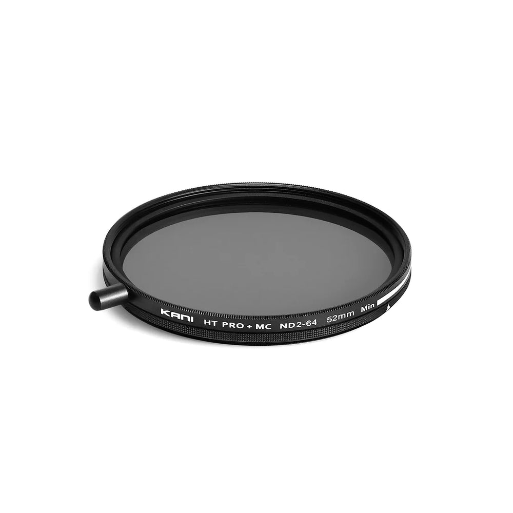The KANI Variable ND2-64 SidePole 52mm is a versatile variable neutral density filter designed for a wide range of photographic applications, from portraits to landscapes. This filter features a detachable rotation knob for easy density adjustment, enhancing usability for both still photography and videography. The ND2-64 range allows for 1 to 6 stops of light reduction, making it ideal for situations where carrying multiple filters is impractical or for environments with rapidly changing light conditions.